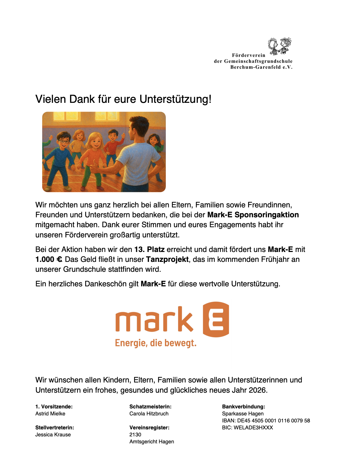 Der Förderverein hat diese Spende in Zusammenarbeit mit der Volksbank
